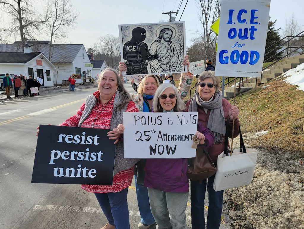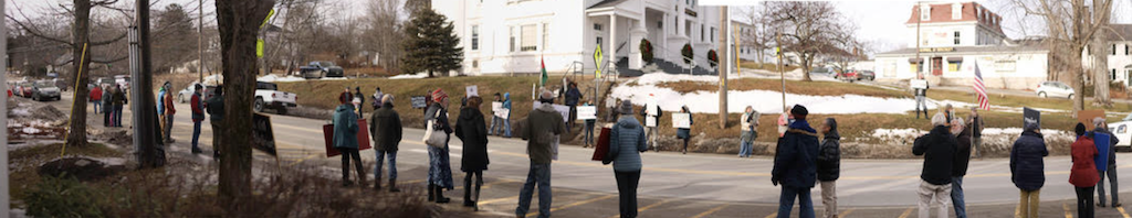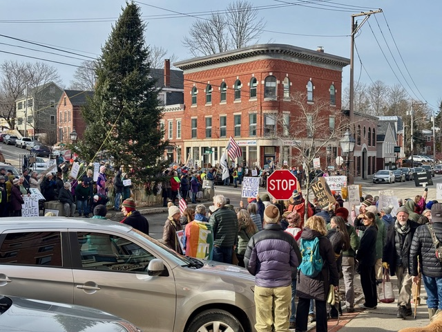 Some 120 people heard speeches by our Rep. Nina Milliken and the League of Women Voters' Ann Luther. Our own Amy DeBeck, UU minister in Castine, and Kevin DeBeck roused the crowd urging us to not to get adjusted to authoritarianism.